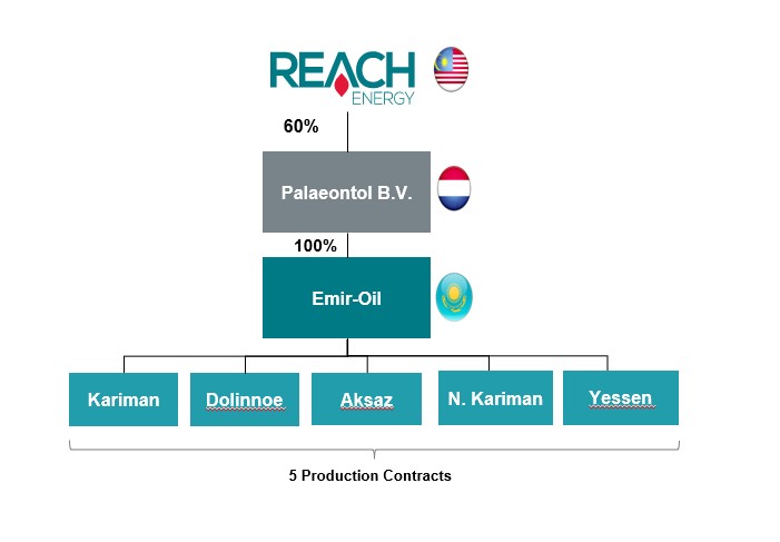 - four producing fields namely, Aksaz condensate-rich gas field, Dolinnoe oil field, Emir oil field and Kariman oil field with a total contract area of approximately 45.5 km2; and